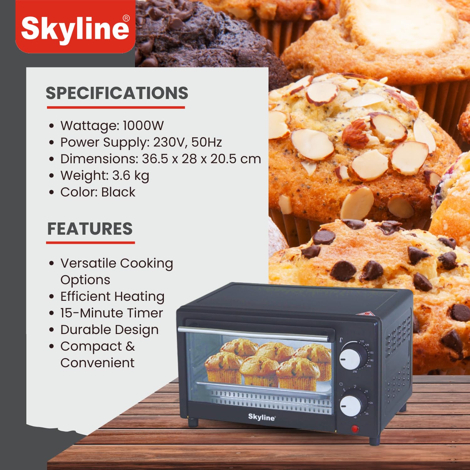 Buy Skyline VT-7064 12 Litre Toaster Oven OTG for baking, grilling and toasting. Compact electric oven ideal for pizza, cakes, snacks and daily home cooking. Fast heating, easy use and energy efficient kitchen appliance.