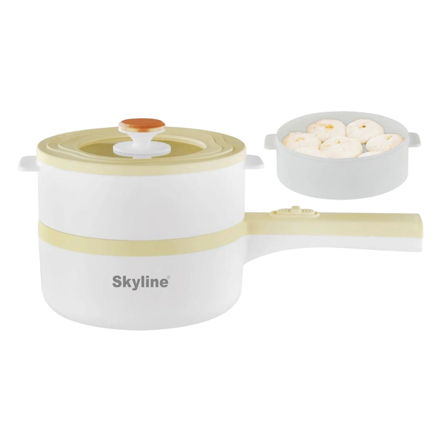 Cook smarter and faster with the Skyline Multifunction Electric Pan, a versatile appliance designed to handle everything from stir-frying and shallow frying to steaming and boiling. With its adjustable power range of 600–1500 watts, you get complete control over cooking speed and heat levels. The steamer attachment makes it perfect for dumplings, momos, vegetables, and healthy meals, while the spacious pan is ideal for noodles, curries, or quick snacks. Available in refreshing mint green and soft light yellow, this electric pan adds a modern, colorful touch to your kitchen.