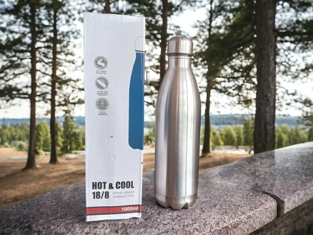 - This Bottle is unique in shape, it has leak proof technology, which make this product easy to carry at school, travelling and work, it is Odour Free and 100 percent Food Grade. Capacity: 1000ml. Material: stainless steel. Color: Silver.