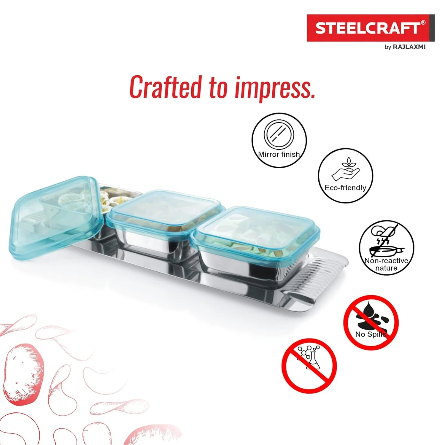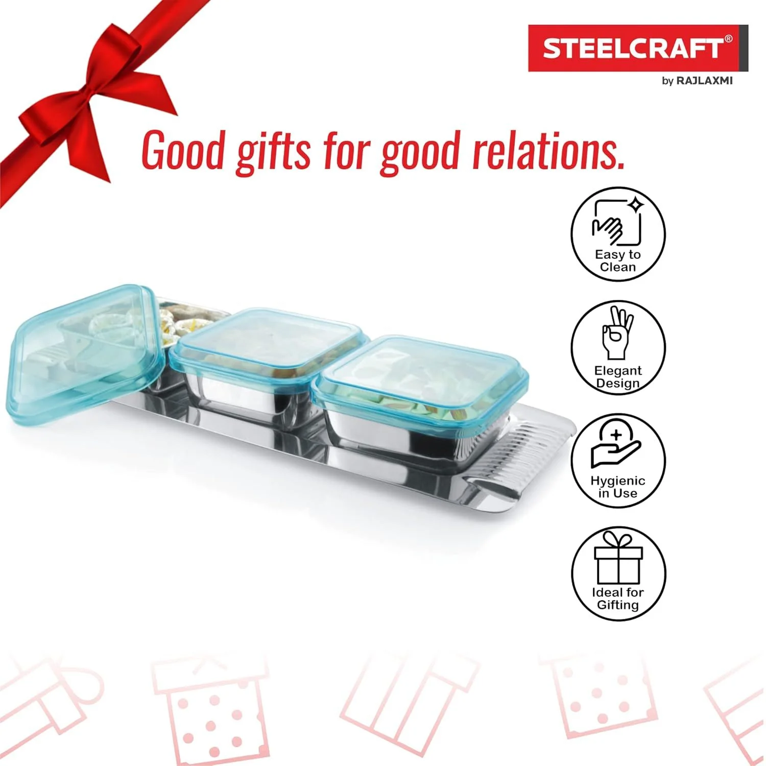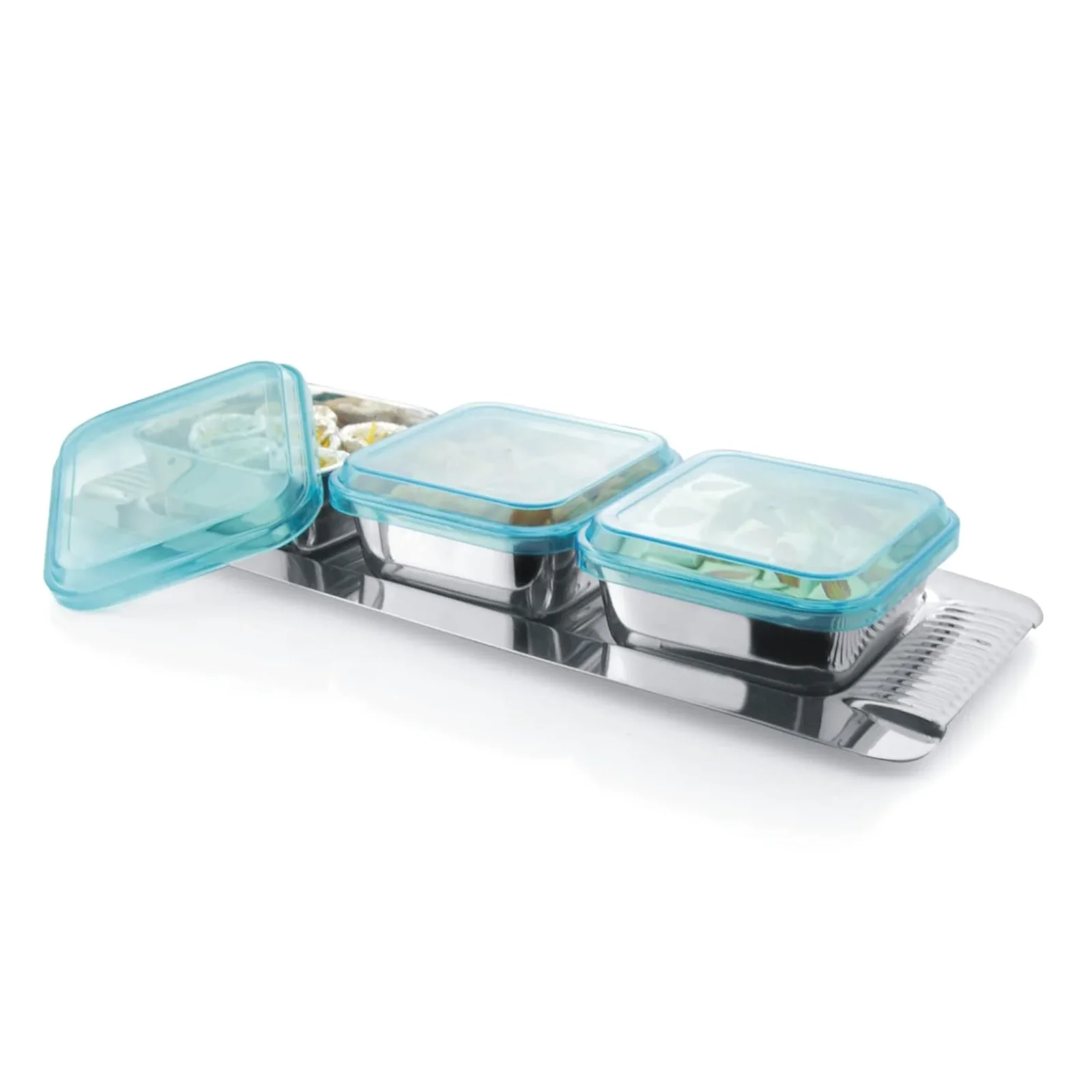 - Package Contains: 4 Pcs Set ( 1 Tray, 3 Containers with lid)