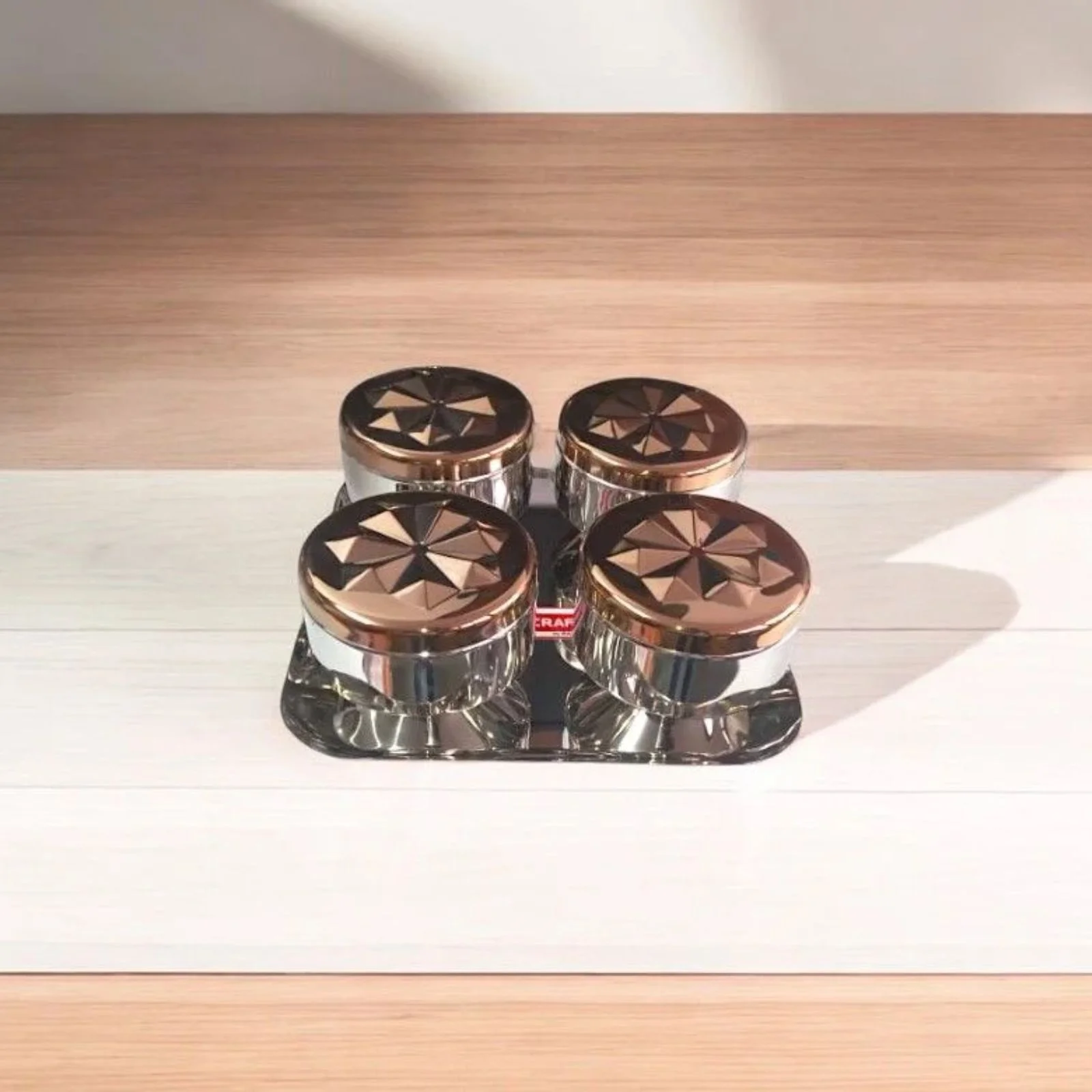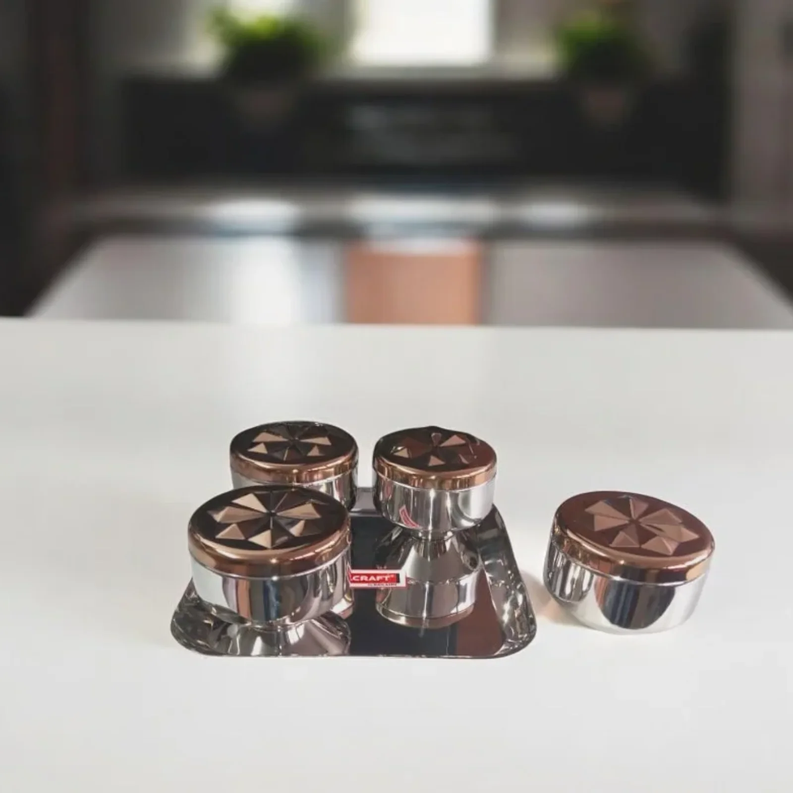 - Package Contains: 4PC bowl, 1pc tray. Premium Stainless Steel Multipurpose Serving Bowl Set gives a clean, modern and classy look to your kitchen.