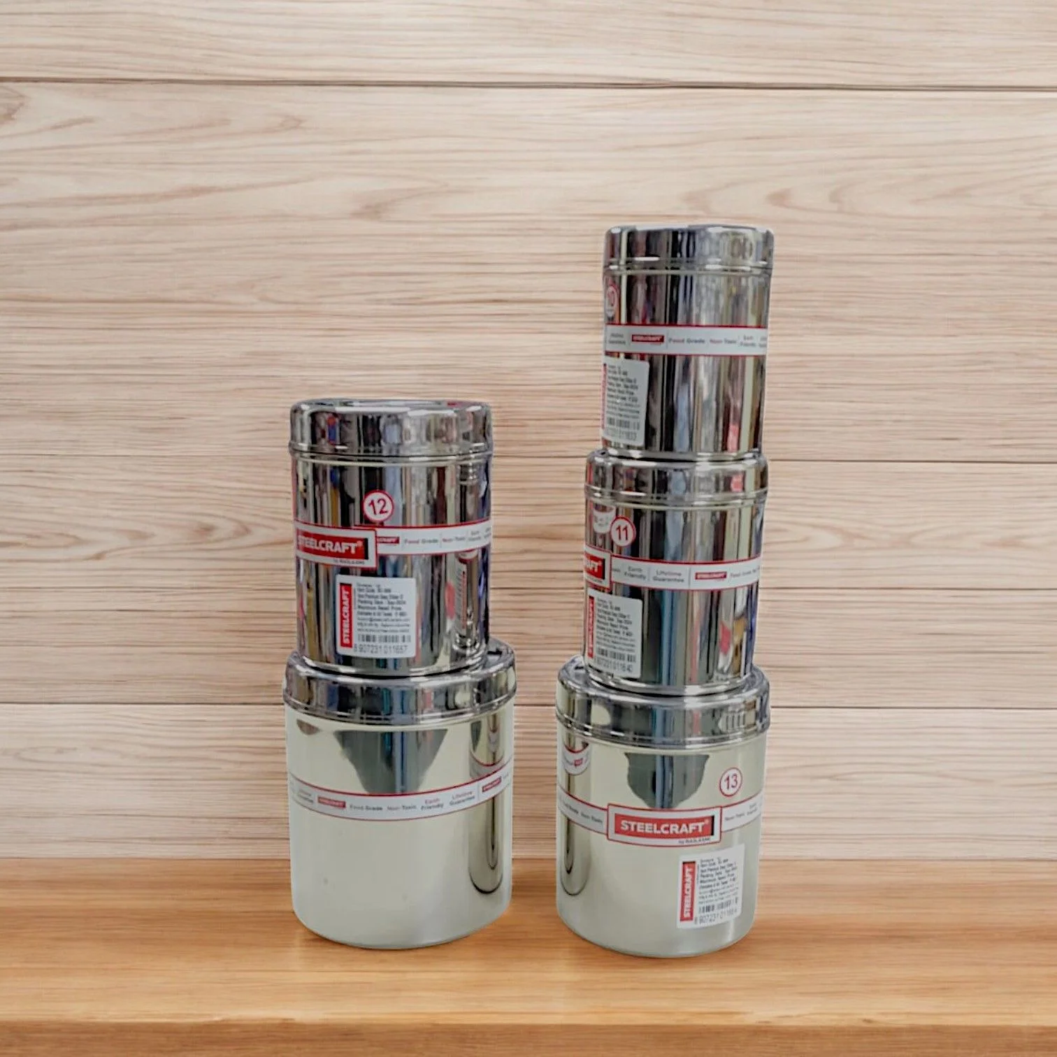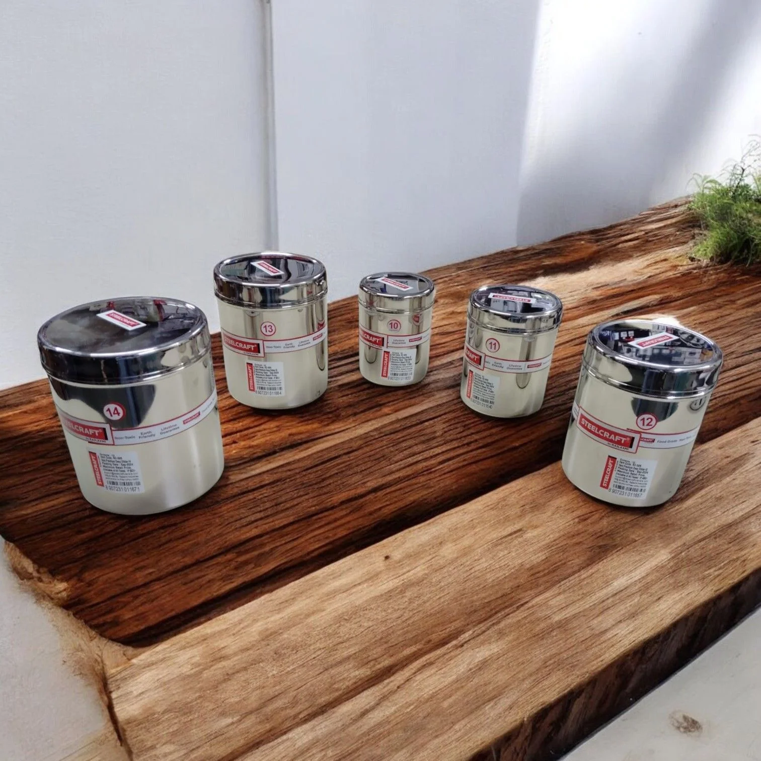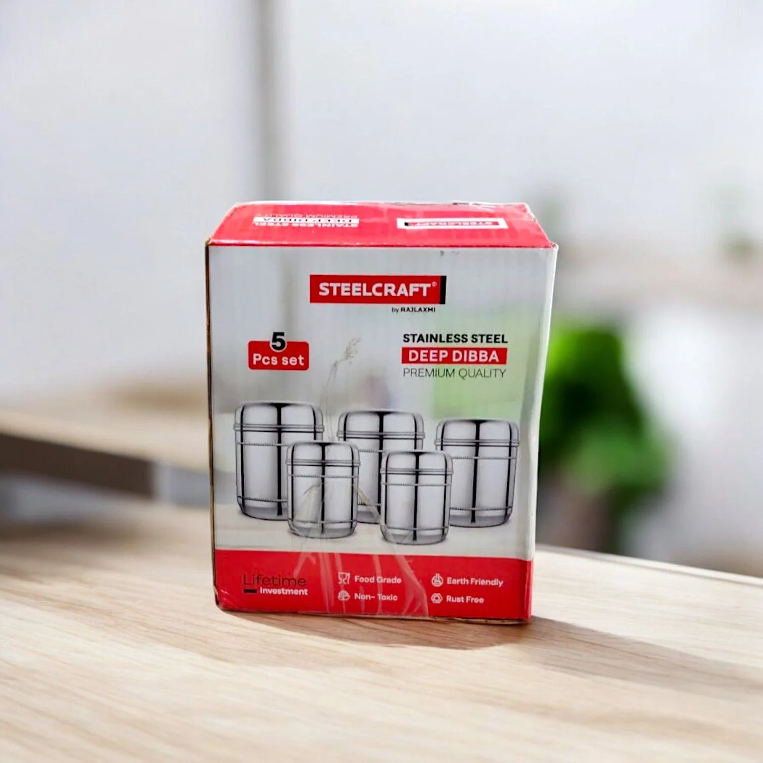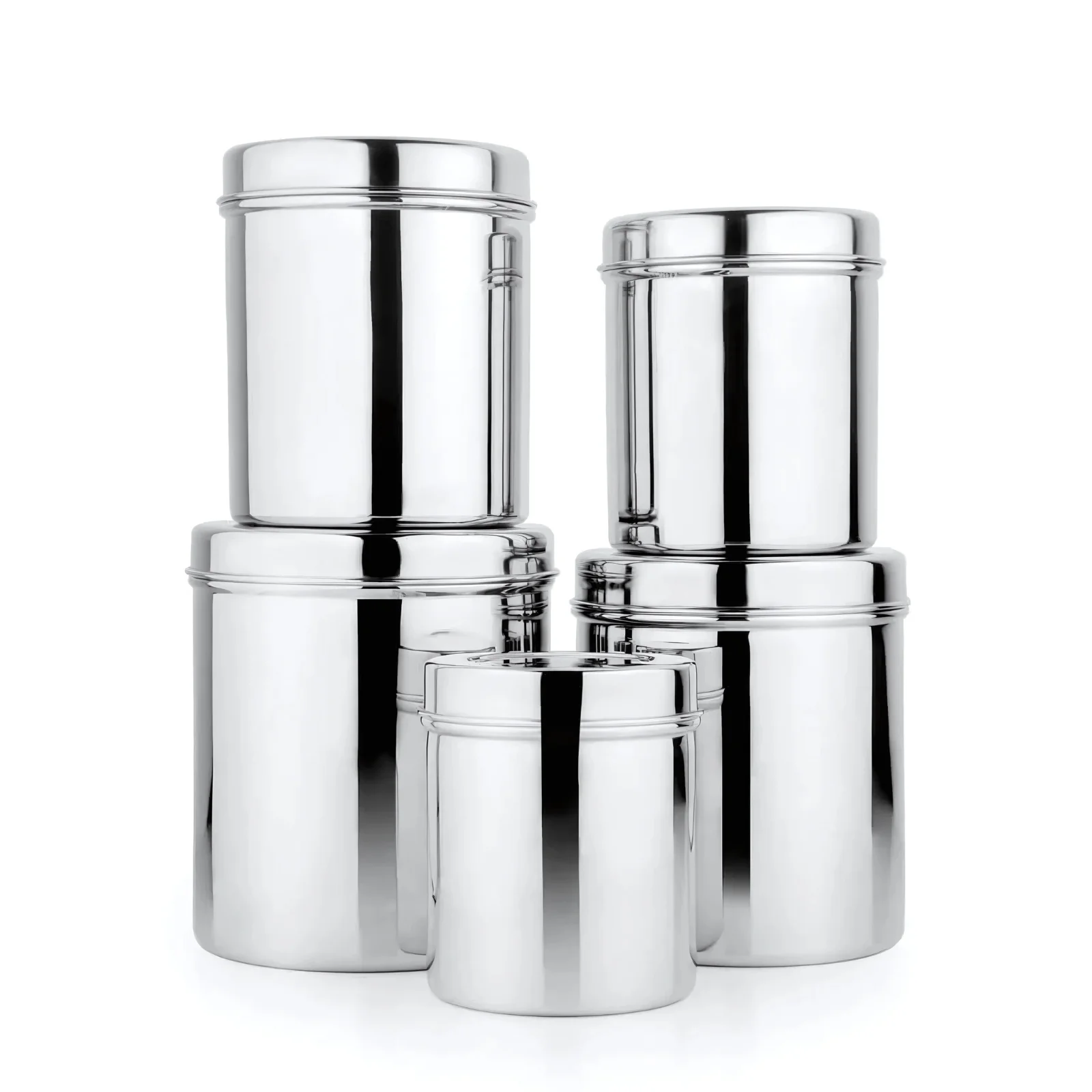 - Stainless Steel Deep Canister Storage box Dabba for Kitchen with Lid Set Of 5 Silver