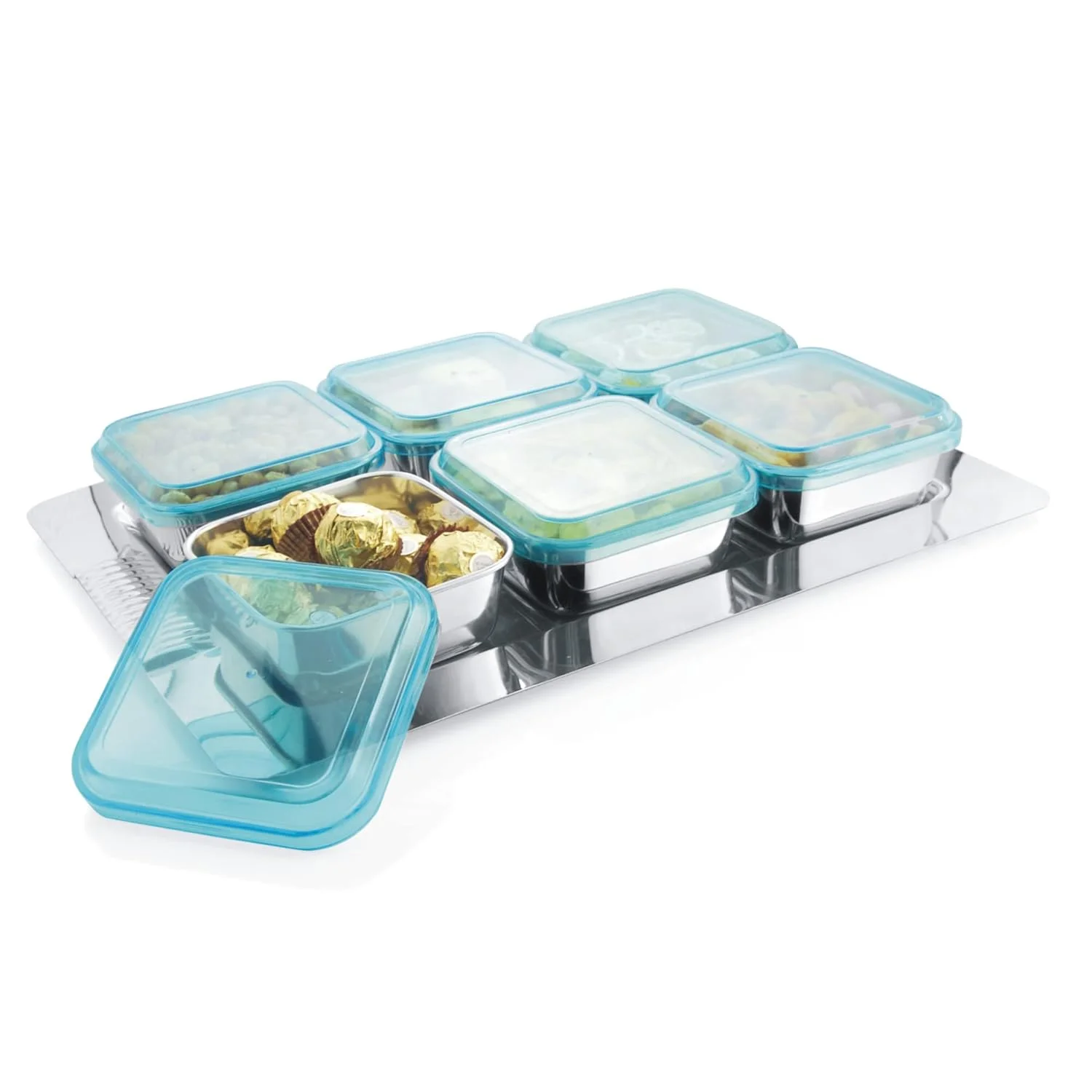 - Package Contains: 7 Pcs Set (1 Tray, 6 Conatiners with lid)