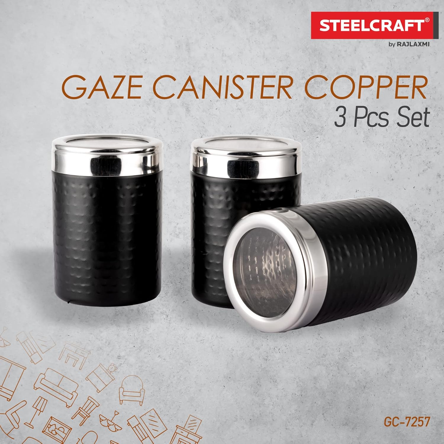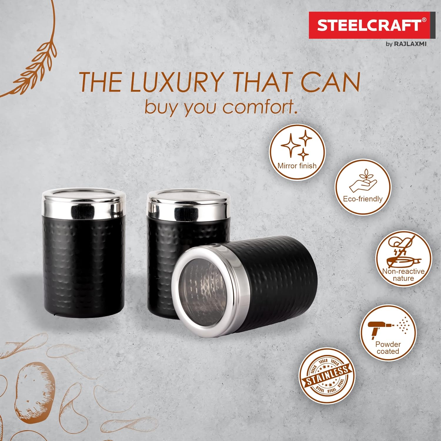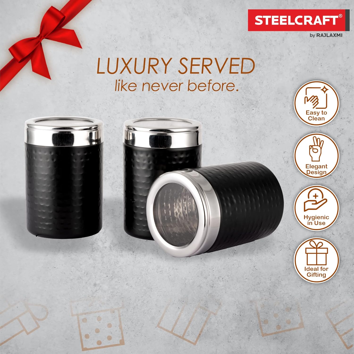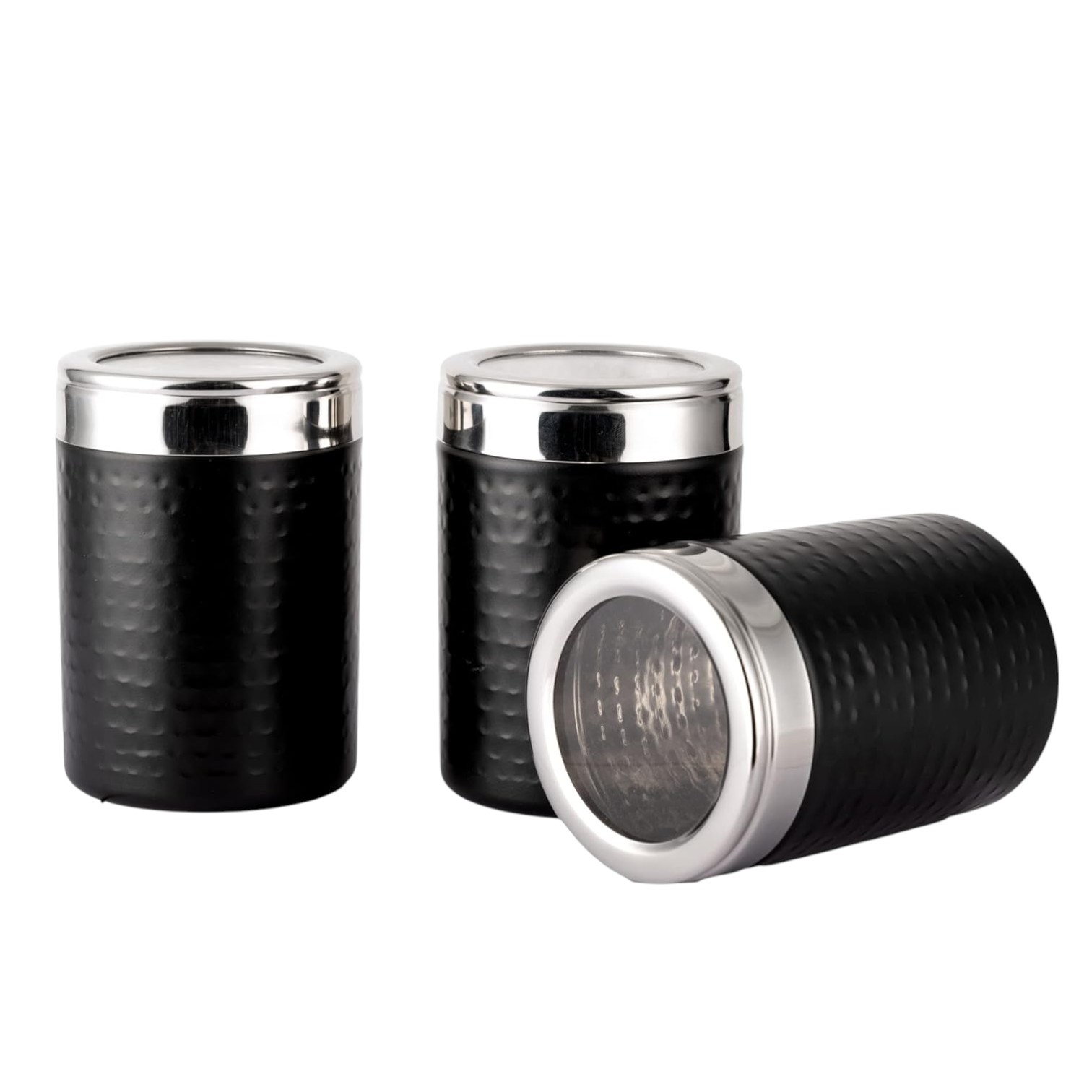 - 3 Pcs Canister Set : Includes 1 each of : Specification : Size 9.5 x 98.5 x 15 cm | Capacity : 270 Ml Each.