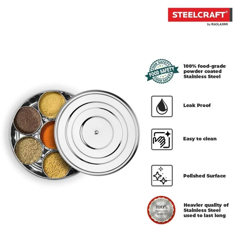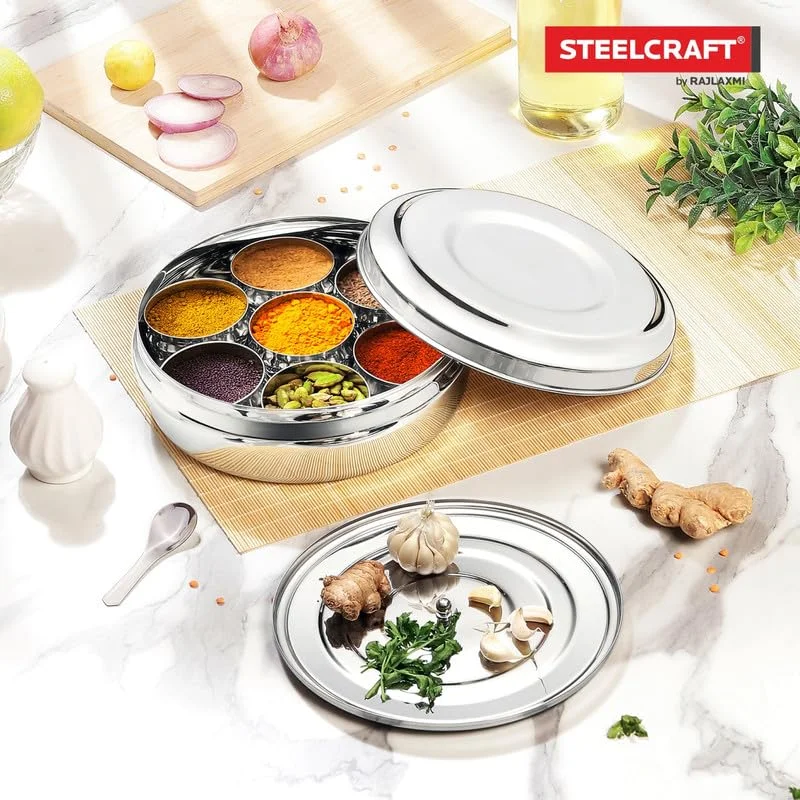 - The Steelcraft Masala Dabba features seven separate removable stainless steel containers, allowing you to organize your spices efficiently.