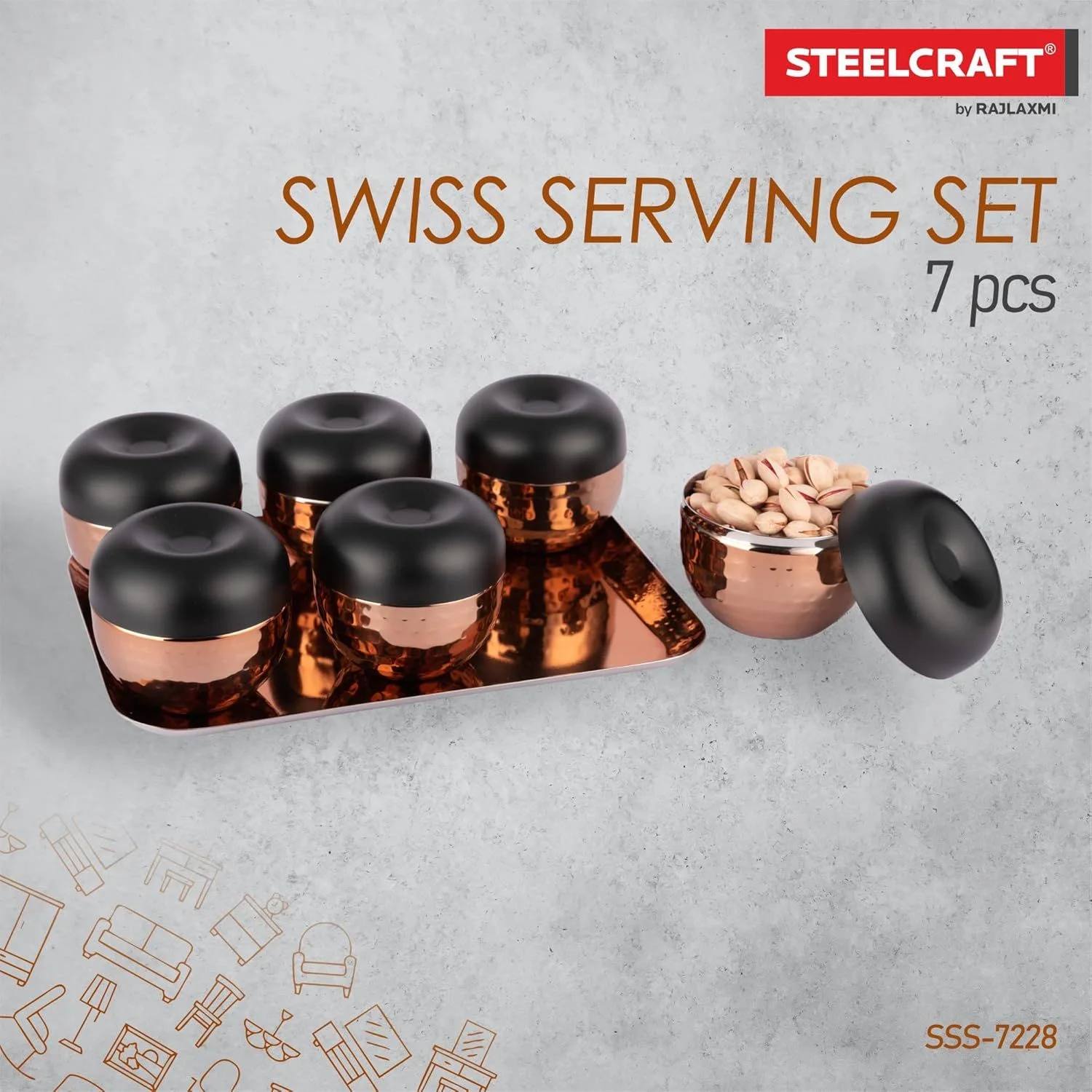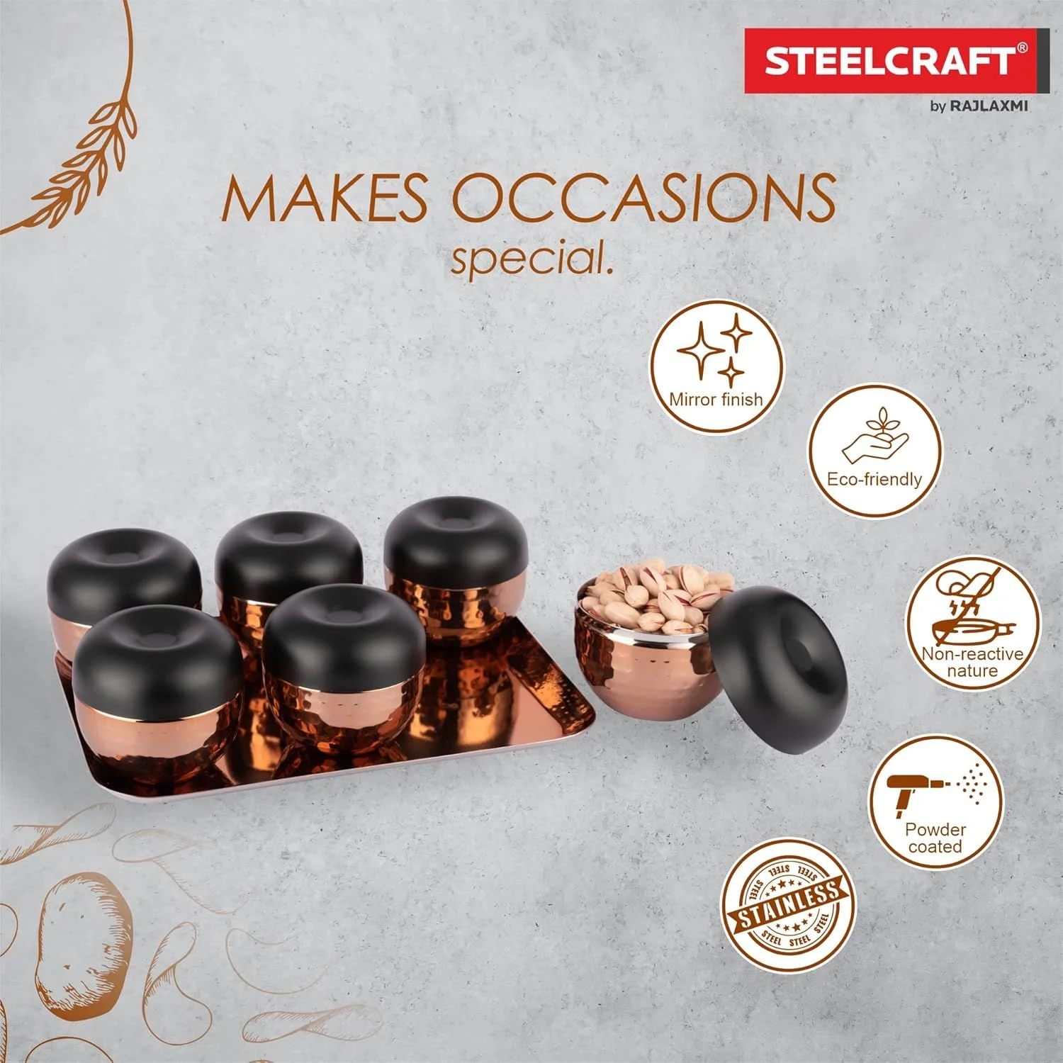 - Package Contains: 6 Serving Bowl Set with SS Lid & Tray.