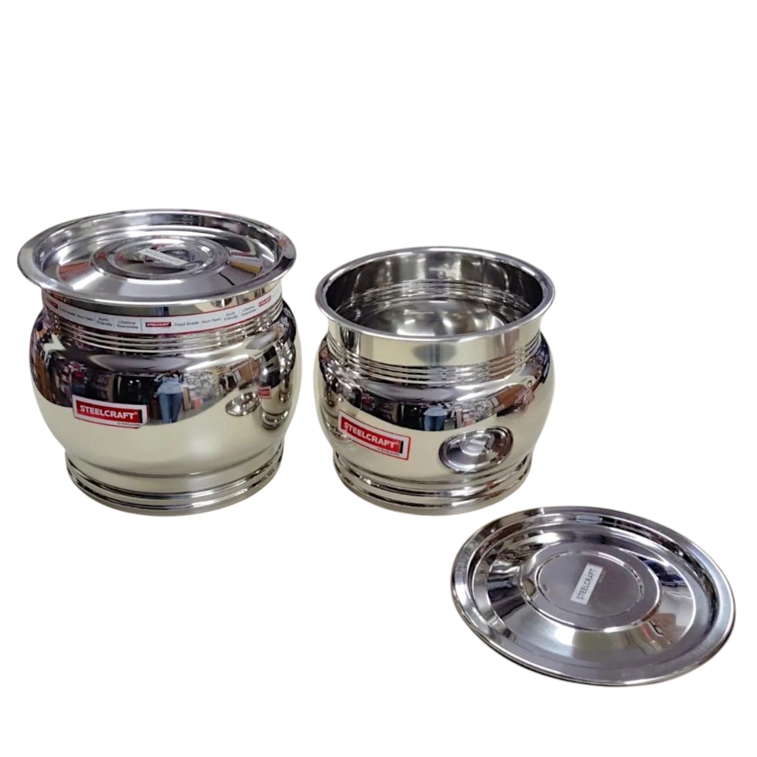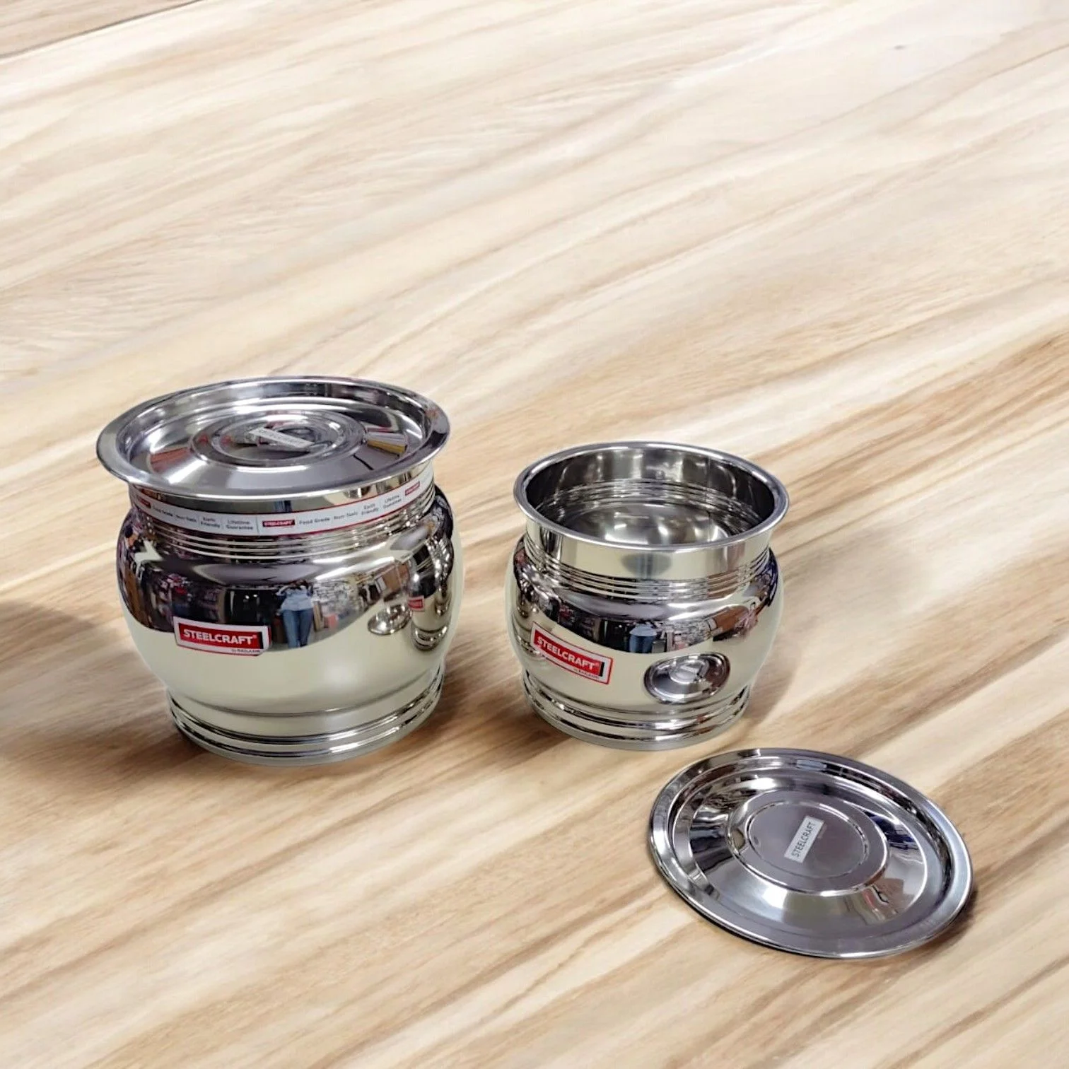 - This Steel Pawali food container allows you to easily store your grains for you.
