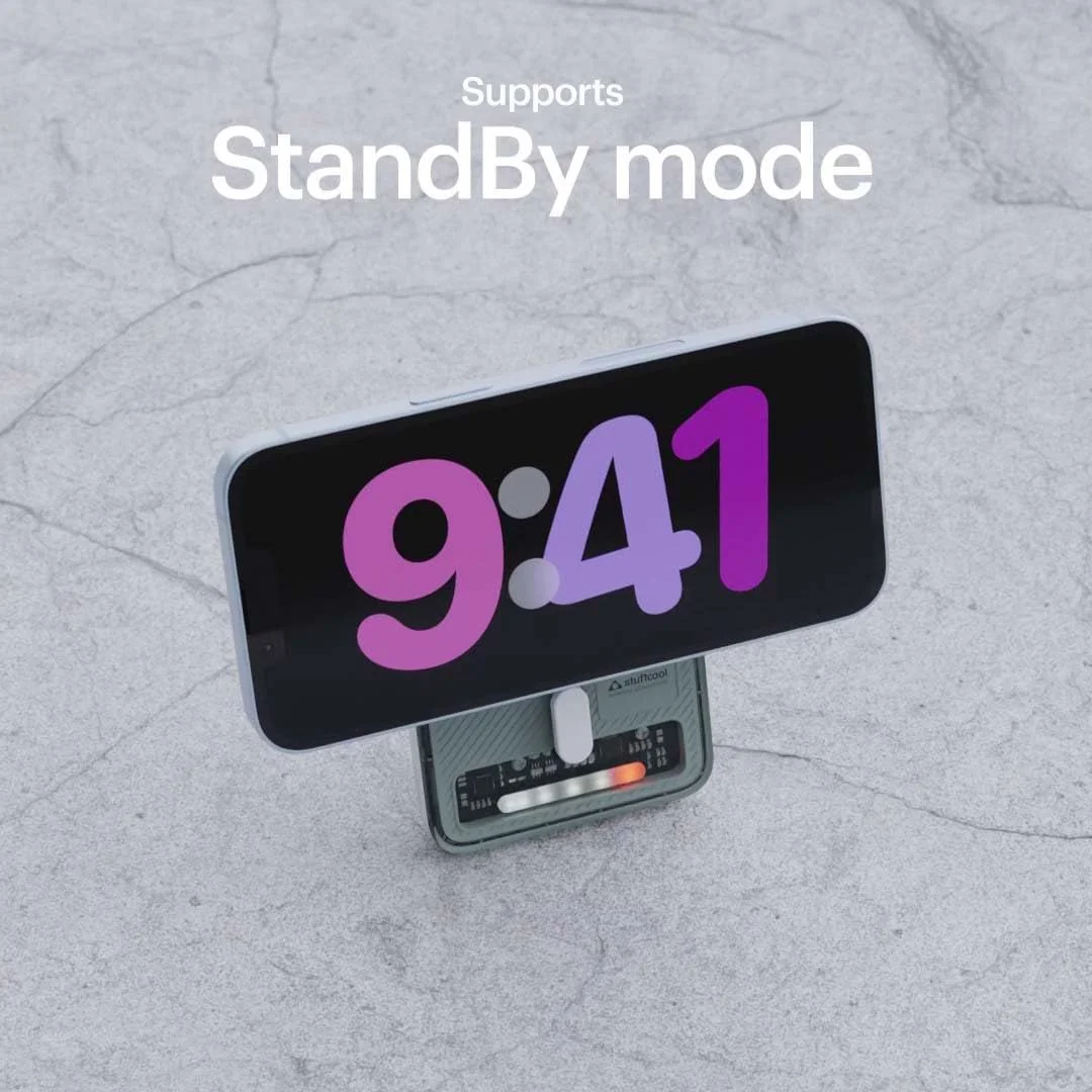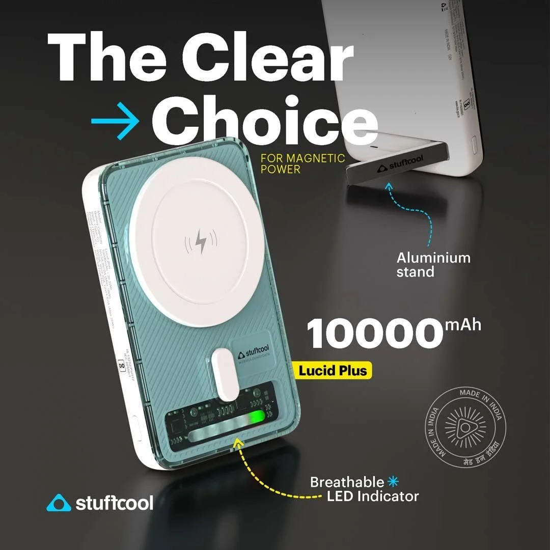 - [Power Packed in Style]:The Lucid Plus is more than just a powerbank; it’s a statement of style. Its sleek, compact, and transparent design, complemented by an aluminum stand and a breathable LED indicator! Lucid Plus looks as good as it performs. Use the stand for easy useability while charging and turn the iPhone horizontally to access StandBy Mode on iOS 17 and above