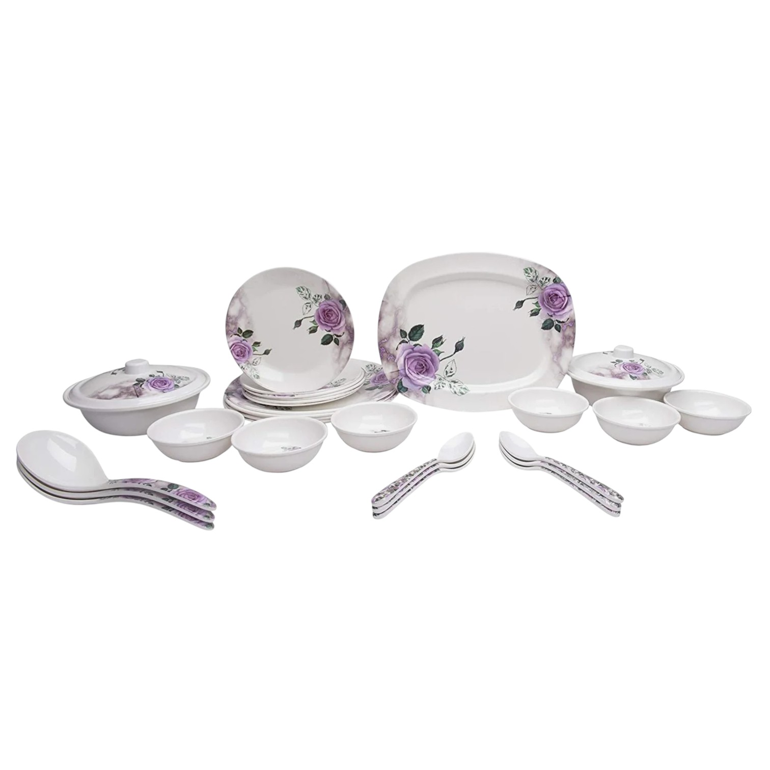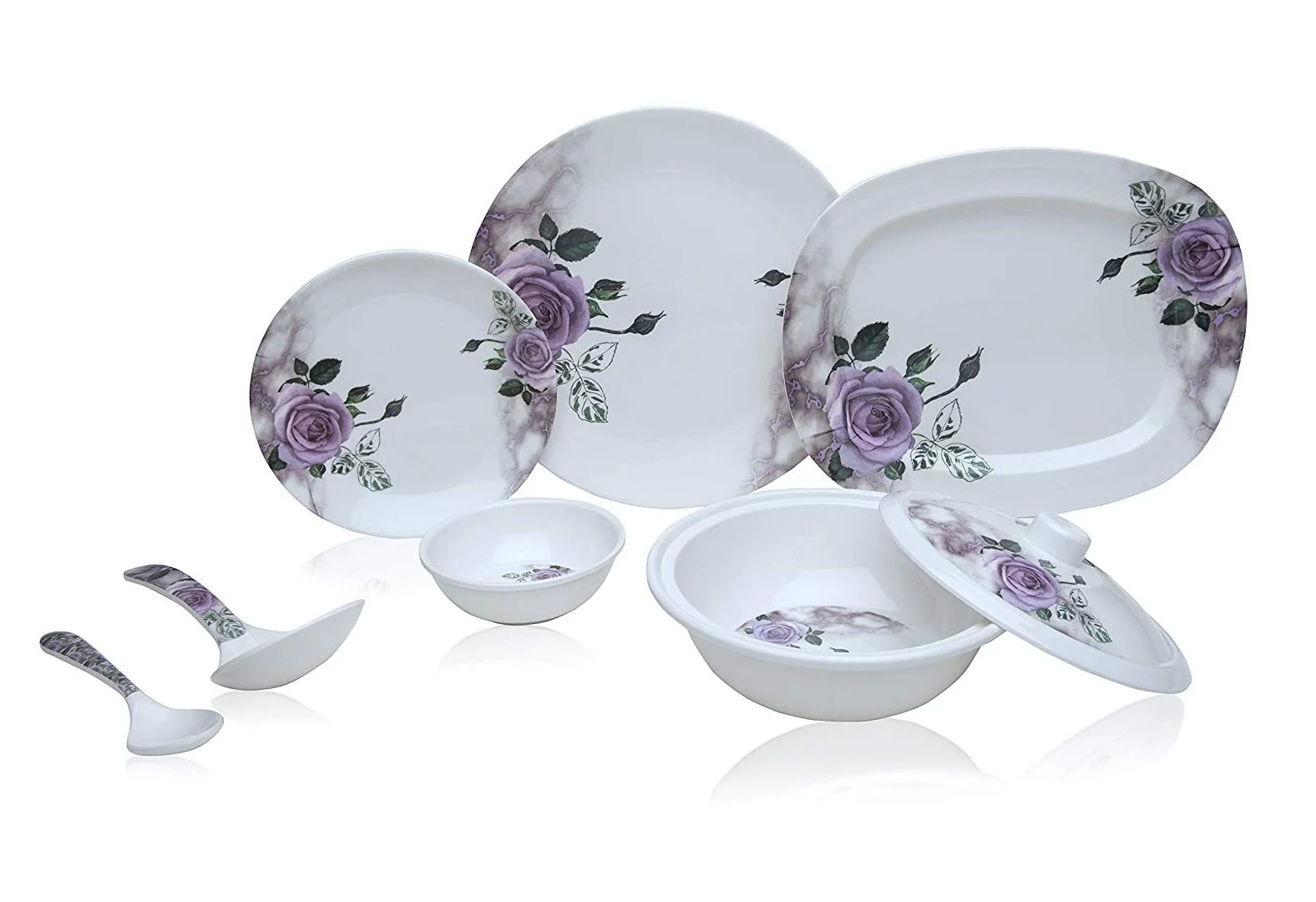 - Material: Melamine. Package Contents: 32-Piece Dinner set.