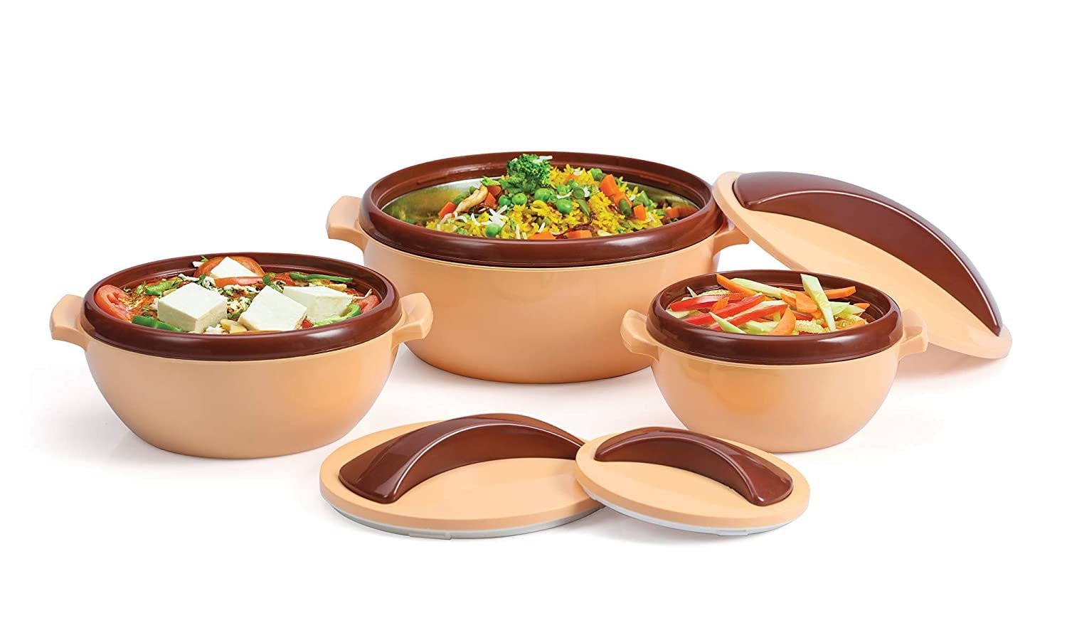 - Material: Plastic, Inner Stainless Steel; Color: Multicolor; Capacity: 500ml+ 1000ml + 1500ml; Pack Of: 3pcs.