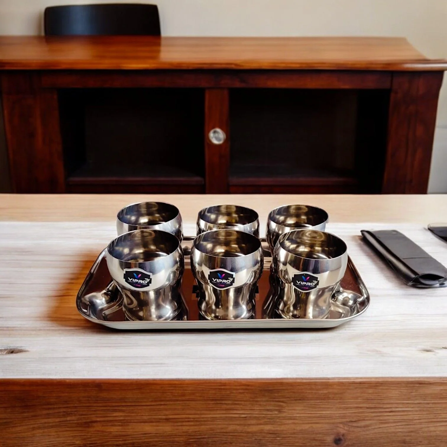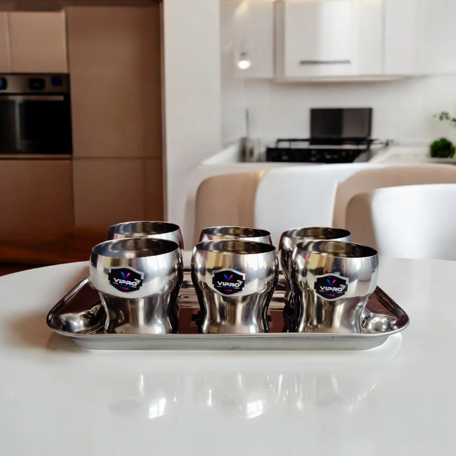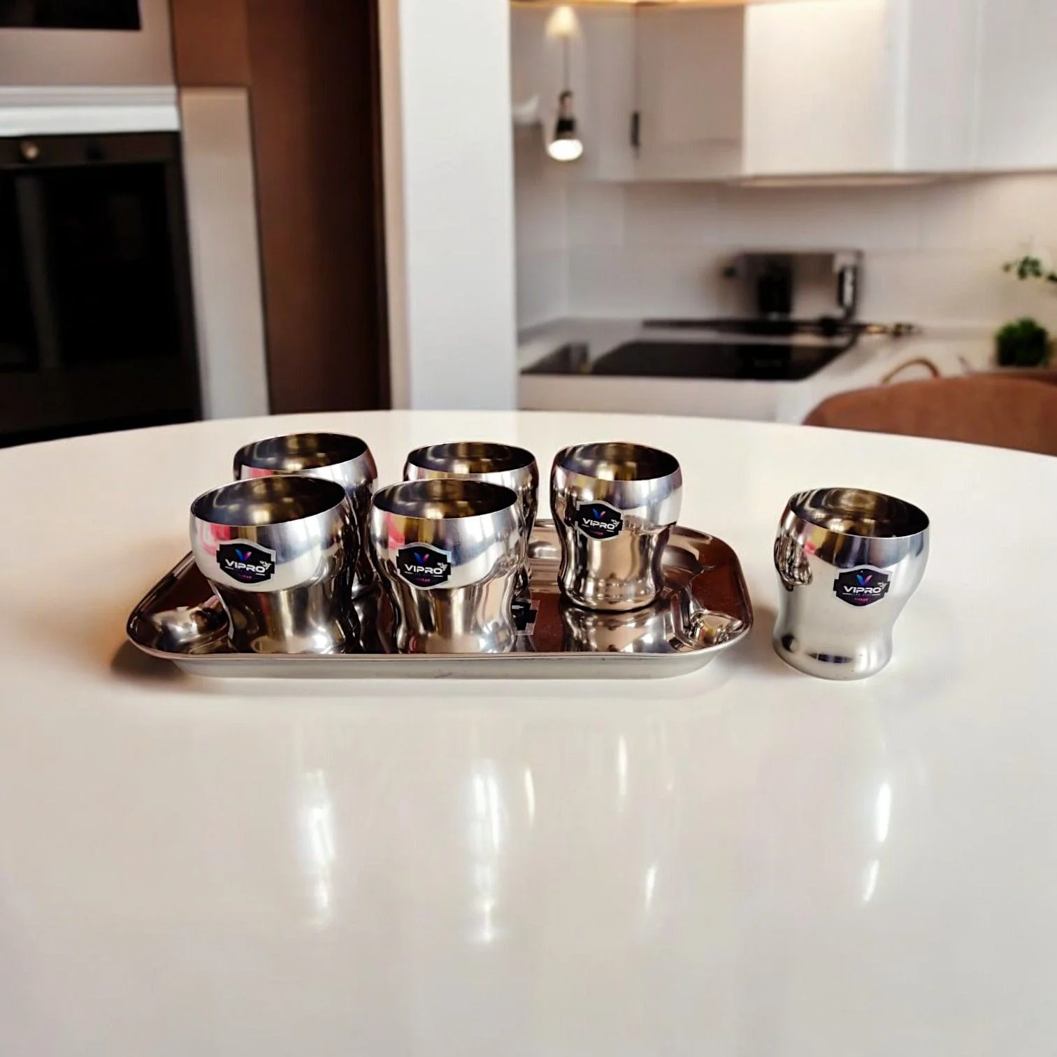 - Versatile Components: The set includes a stainless steel tray and matching glasses.
