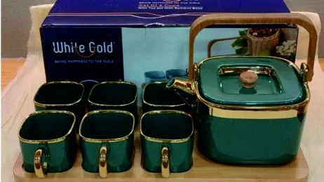 - Package contents: 1pc tea kettle, 6pc cup, 1pc wooden tray.